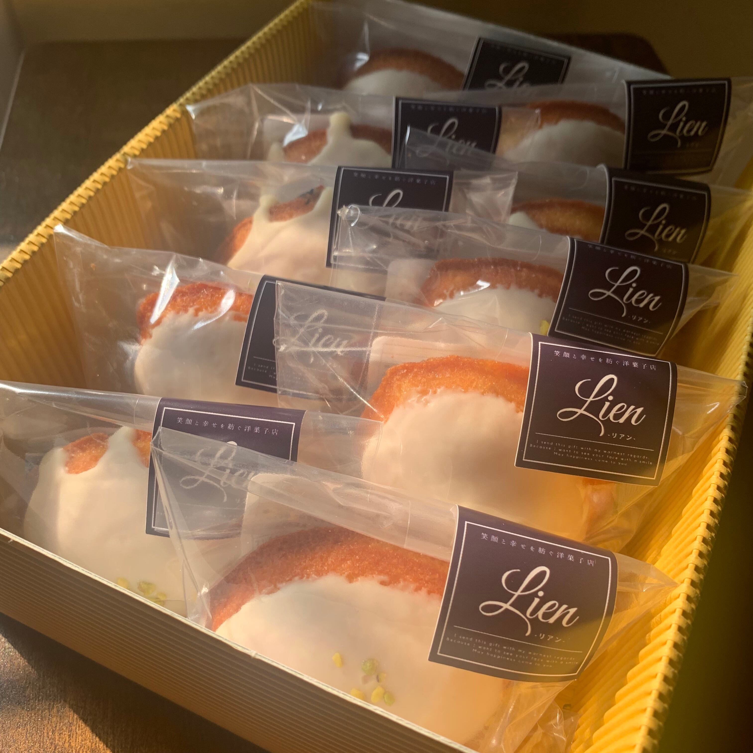 レモンの形で焼き上げ、ホワイトチョコとピスタチオで可愛く飾り付けをしました。